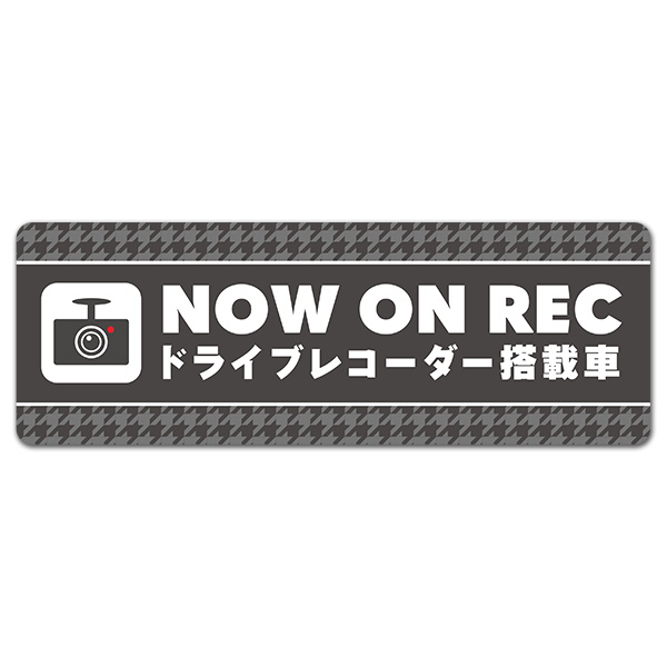 横長でシンプルな千鳥柄に、ドライブレコーダー搭載「NOW ON REC」テキストデザインの車マグネットステッカー!マグネットパーク限定オリジナルデザインです。 |
