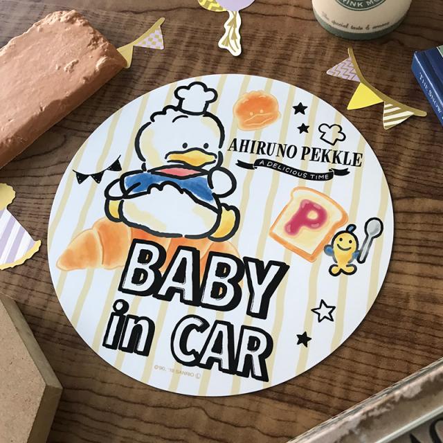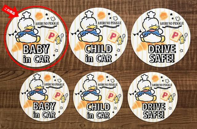 車マグネットステッカー ゆうパケット対応210円〜あひるのペックル 丸型18cm BABY IN CAR ベビーインカー ベイビーインカー