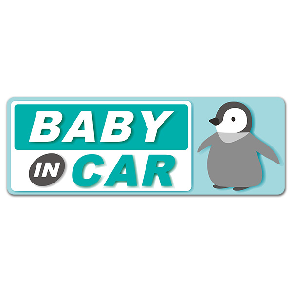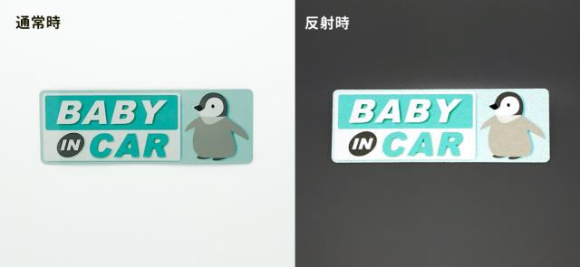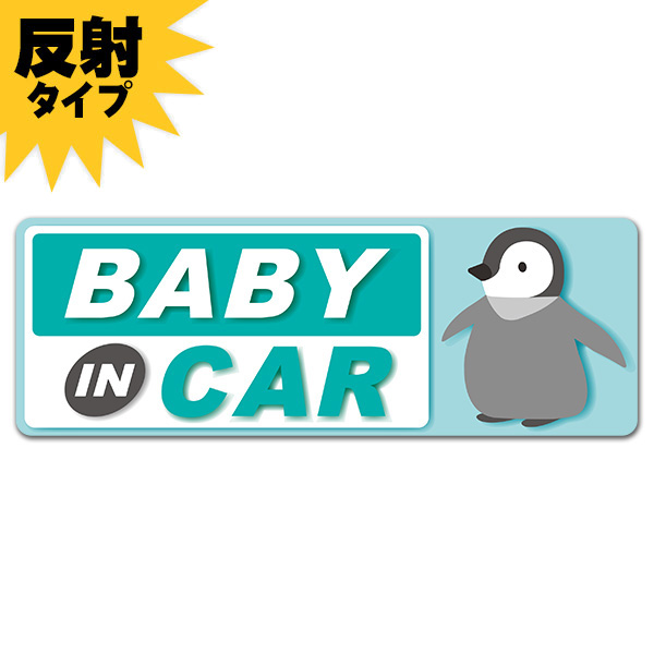 反射車マグネットステッカー ゆうパケット対応210円〜こどもペンギン 緑 BABY IN CAR スリム型