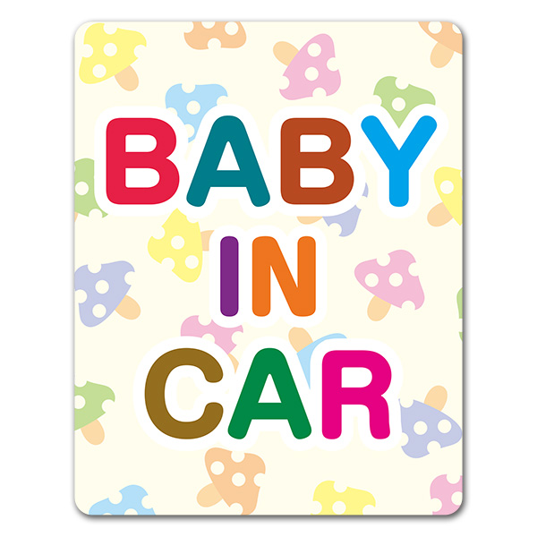車マグネットステッカー ゆうパケット対応210円〜きのこ柄 BABY IN CAR ベビーインカー ベイビーインカー