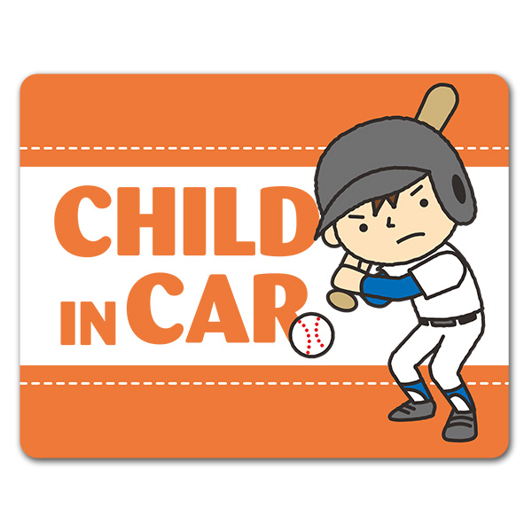 車マグネットステッカー ゆうパケット対応210円〜野球 右バッターの男の子 CHILD IN CAR チャイルドインカー