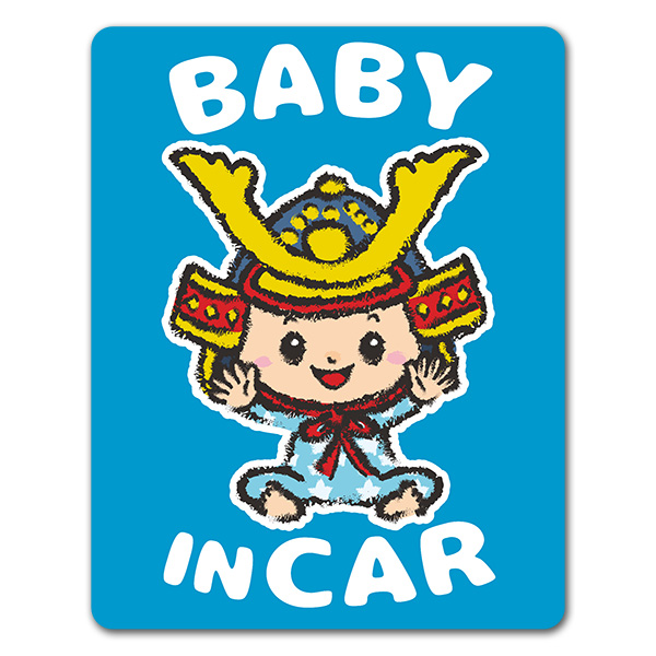 かわいい赤ちゃんがかぶとをかぶった、こどもの日におススメのデザイン!マグネットパーク限定オリジナルデザインの車マグネットステッカーです。 |