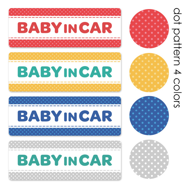 横長でシンプルな「BABY IN CAR」テキストデザインの車マグネットステッカー!マグネットパーク限定オリジナルデザインのドット柄です。 |