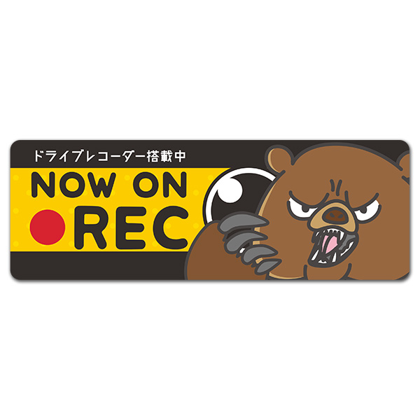 車マグネットステッカー ゆうパケット対応210円〜威嚇クマ ドライブレコーダー搭載中 NOW ON REC スリム型