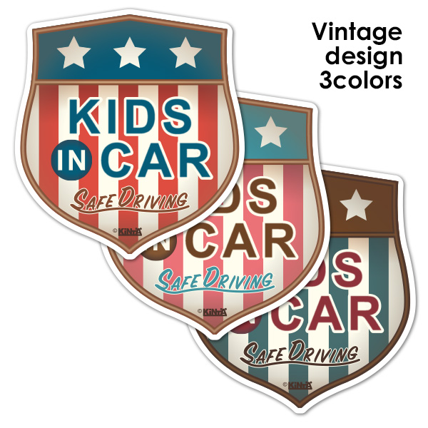 ヴィンテージ感のあるエンブレム風のデザインがかっこいい!ちょっとアメリカンな雰囲気も感じさせる「KIDS IN CAR」と「SAFE DRIVING」の文字をデザインした、マグネットパーク限定オリジナルデザインの車マグネットステッカーです。 |