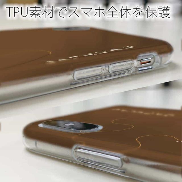 | ケースの素材について | 側面はゴムのように柔らかいTPU素材で、スマホ本体を守ります。万が一の落下でもケースが割れることがなく、耐久性の高いケースとなります。クリア(透明)のTPUケースにプリントしていますので、スマホ本体のカラーを活かしながらデザインケースが楽しめます。 |