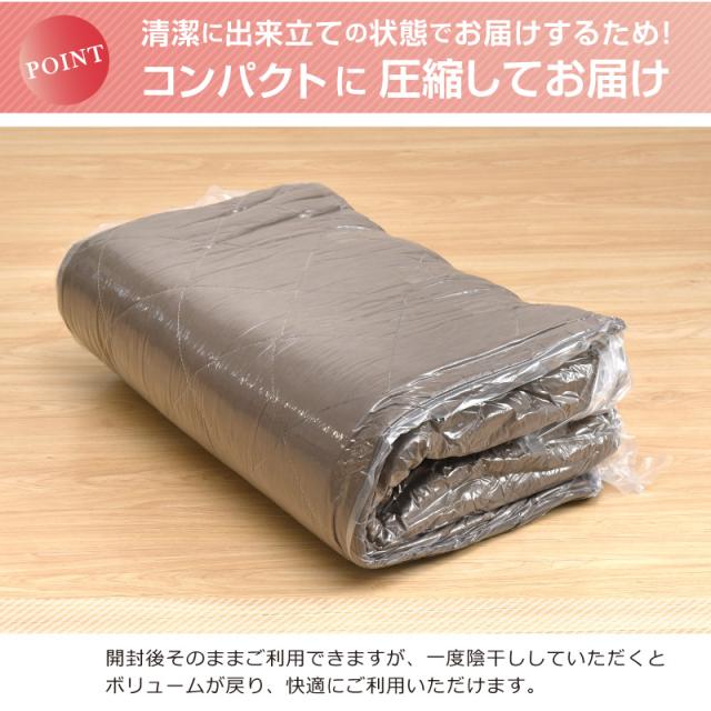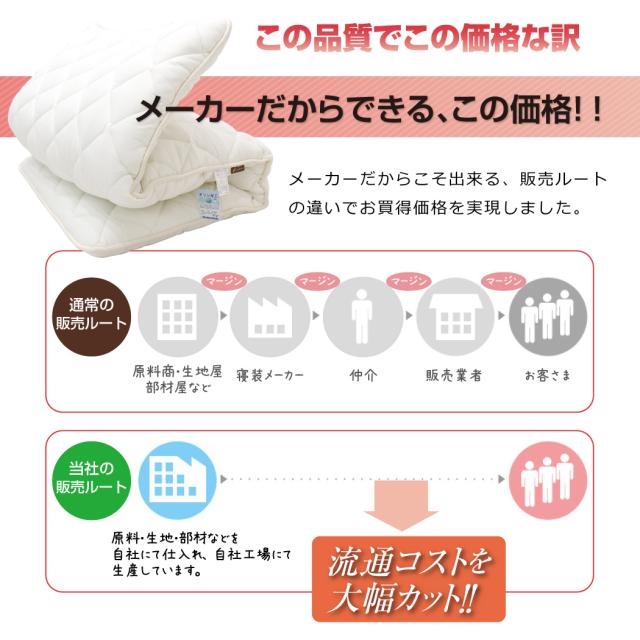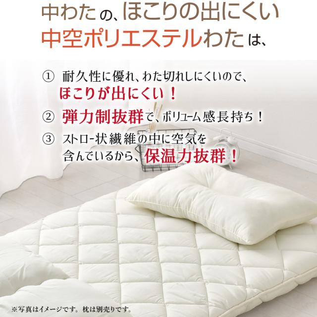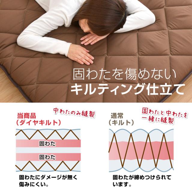 中綿の片寄りや、型崩れを起こしにくいよう仕上げてありますので、長期にわたってふかふかの感触をお楽しみいただけます。