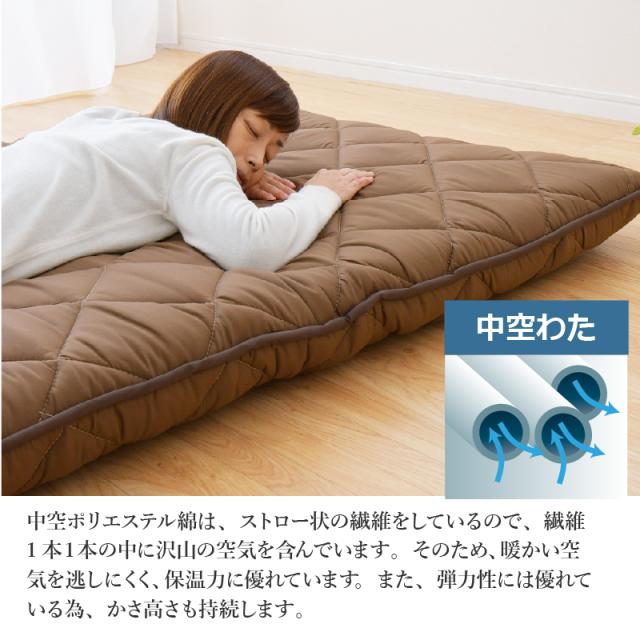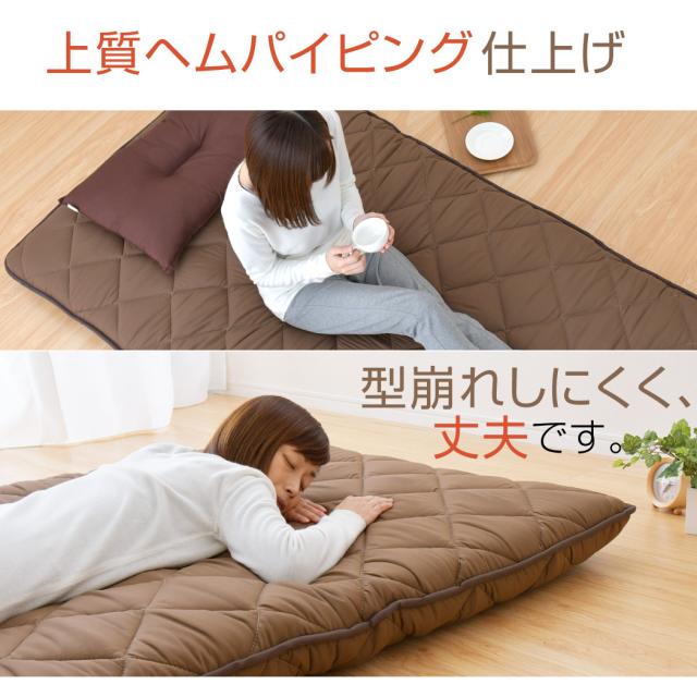 従来の敷布団で起こりやすい底つき感を軽減し、へたりにくく、シングルサイズよりも少し長めのシングルロングサイズで余裕のある大きさです。