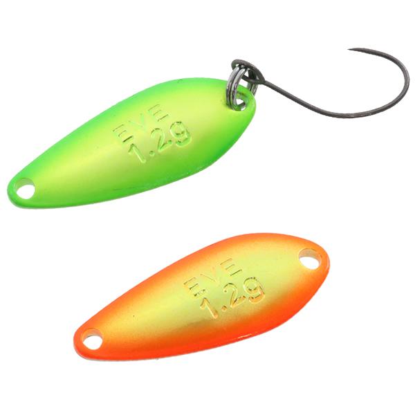 ●「イヴ」のアクションはアダム譲りのハイピッチウォブンロールであるが、どちらかと言えばアダムよりもロールを強めに設定している。理由は、アダムよりタフな状況で投入する機会が多いため、見切られないスピード、つまり速いスピードで引ける安定感といわゆる「立ち泳ぎ」のような超デッドスローでもしっかりアクションするレスポンスが必要なためである。シルエットの小ささに加え、幅広いスピードへの対応力が「イヴ」の魅力。ローテーションのスキをなくす非常に重要なスプーンである。