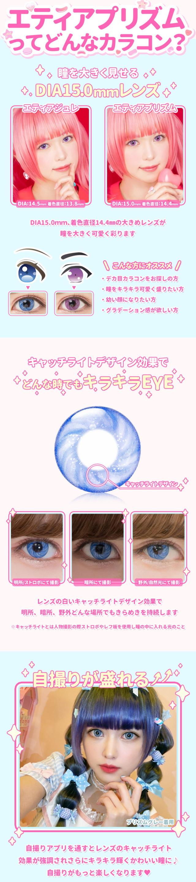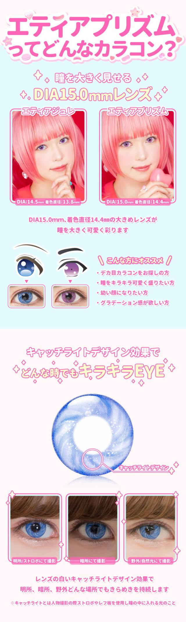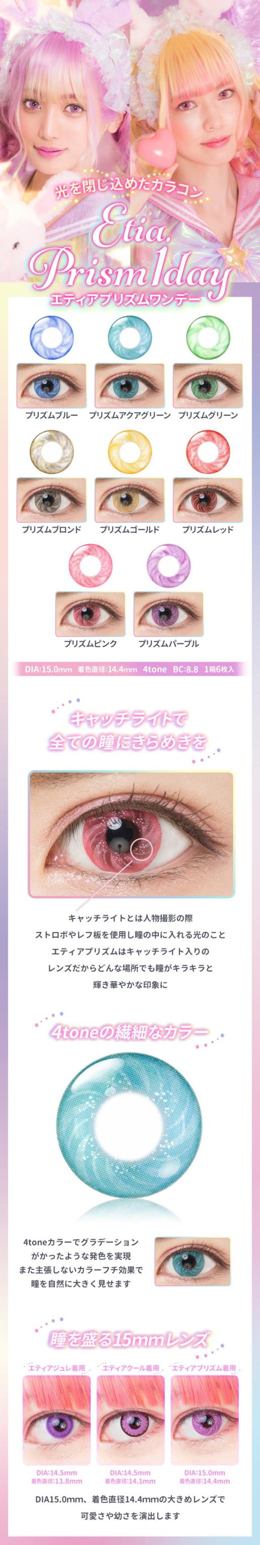コスプレ カラコン エティア プリズム ワンデー 着色直径14.4mm 直径15.0mm 4tone 1箱6枚 度あり 度なし ワンデー 1day 1日使い捨て 15ミリ 15mm 15.0 高発色 きらきら ハロウィン big_bc