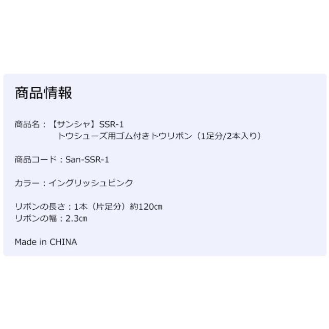 【サンシャ】のゴム付きトゥシューズリボンです。