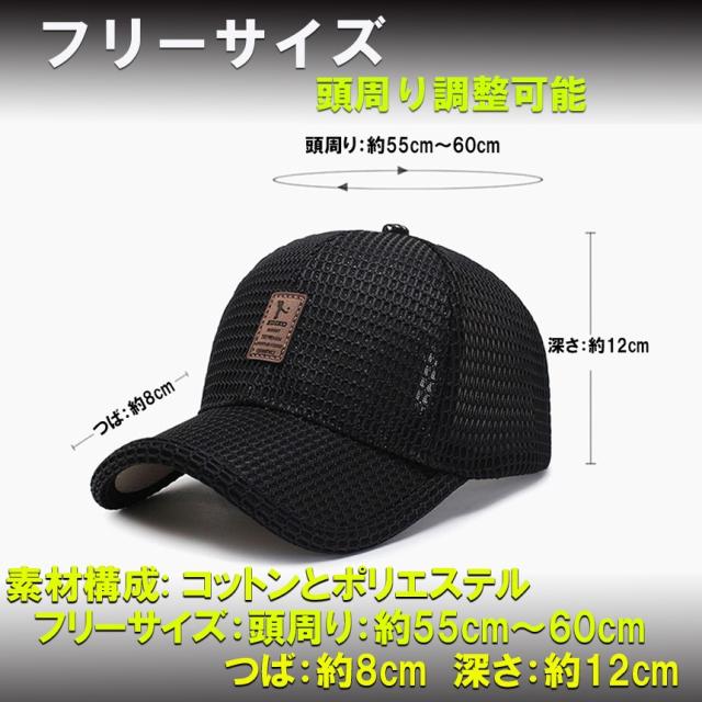 キャップ全体は薄地のメッシュで、着用しても蒸れなく快適で、夏だけではなく、