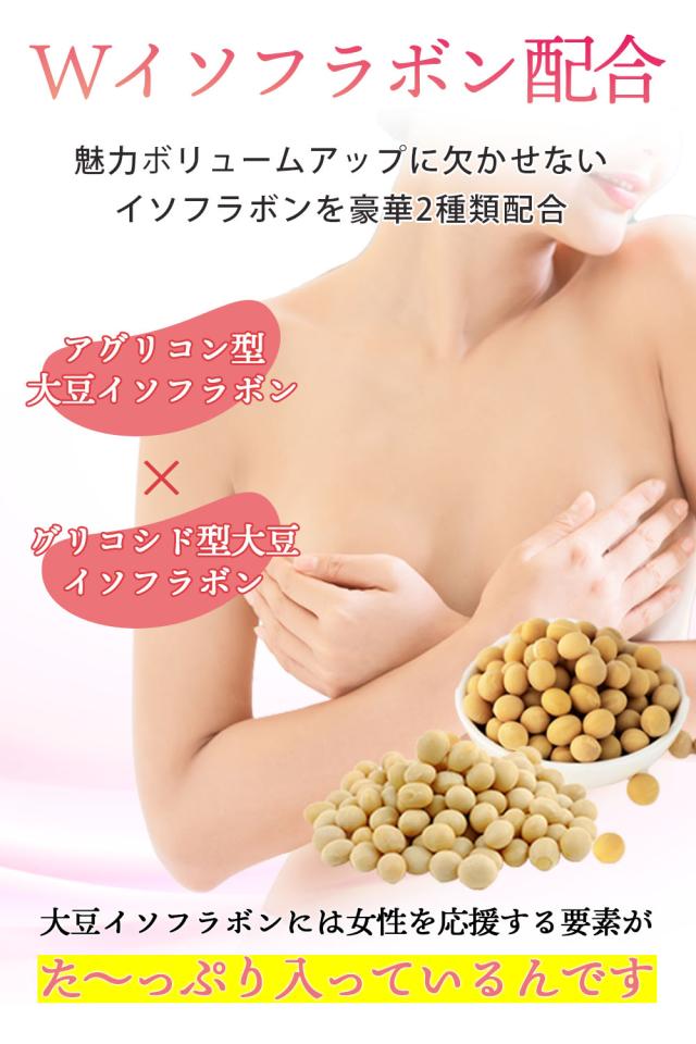 魅力ボリュームアップに欠かせないイソフラボンを豪華2種配合しています。