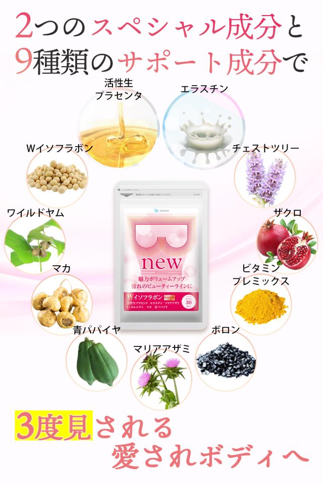 2つのスペシャル成分と9種のサポート成分で3度見される愛されボディへ!
