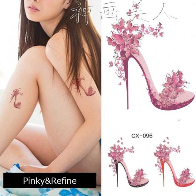 今ダケ2枚セット!!「メール便無料」ピンクハイヒール お洒落サンダル柄 タトゥーシール ボディシール 盛れる個性派 セクシー 転写シール入れ墨 ハロウィン 花魁シール タトゥシール ボディペイント