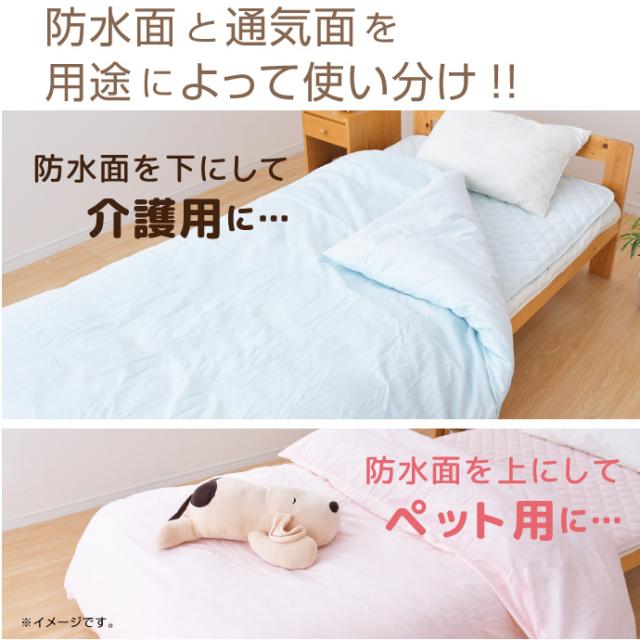 ペットが掛け布団に乗って汚してしまいそうな場合は、防水面を上にして…!