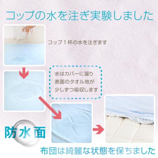 | 商品詳細 | 洗える!防水掛け布団カバー【シングルロング】(約150×210cm) 介護用やペットのおねしょ対策に、完全防水加工で安心感アップ丸洗いOK! 綿100%シンカーパイルタオル生地使用でやさしい肌触り 『防水面』を用途によって使い分け!! 介護用には、防水面を肌に接する内側に…! ペットが掛け布団に乗って汚してしまいそうな場合は、防水面を上にして…! 優しい色合いの「ブルー」と「ピンク」の2色からお選びください。 |