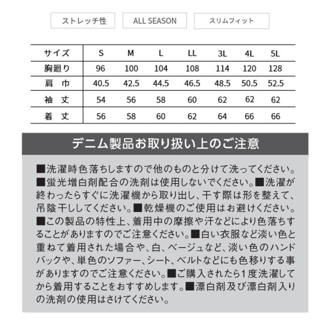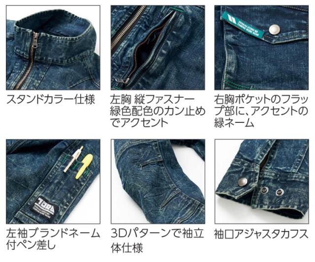 作業服 作業着 TORAICHI 寅壱 トライチ デニム長袖ブルゾン 8920-124 スリムフィット