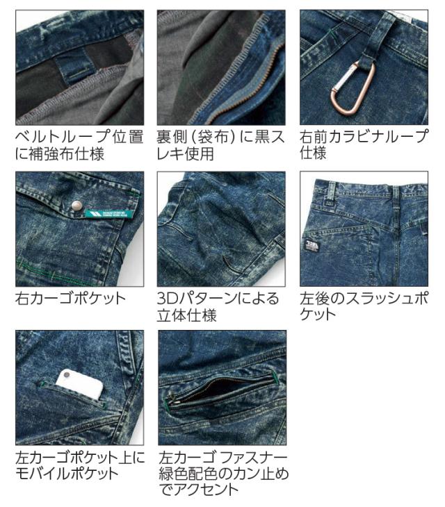 作業服 作業着 TORAICHI 寅壱 トライチ デニムカーゴパンツ 8920-219 スリムフィット