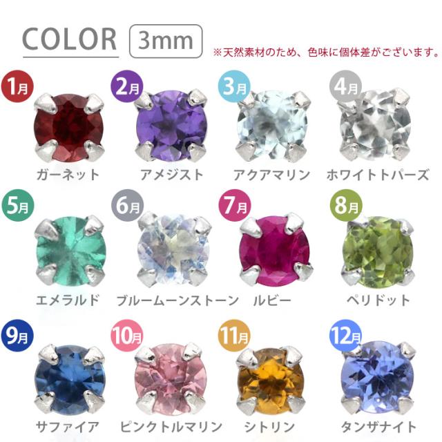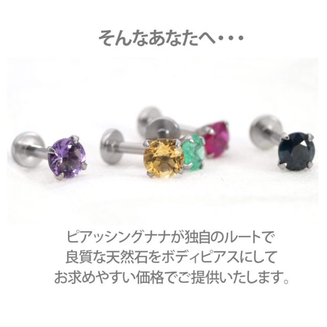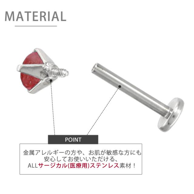 今や不動の人気を誇る、キラキラジュエルヘッドのボディピアスに誕生石が登場しました。ジュエルは4つの爪でしっかりセッティングされているので、どんな時でもどの部位でも安心です。太さは人気の18G、16G、14Gをご用意致しました。しかも、ホールに優しいインターナル(内ネジ)タイプ。ネジ山が直接ホールに触れないため、ファーストピアスにもお勧めです。耳たぶピアスに、軟骨ピアスに、もちろん口ピアスに、究極カスタムで自分だけのボディピアスを楽しめる自慢のアイテム。ピアスの材質には、金属アレルギーにも安心の医療用素材”316Lサージカルステンレス”を採用しています。 時間がたっても変色や変形しにくく、金属の輝きが色あせません。