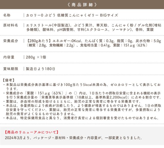 ■カロリー0 ぶどう 低糖質こんにゃくゼリー ×1個
