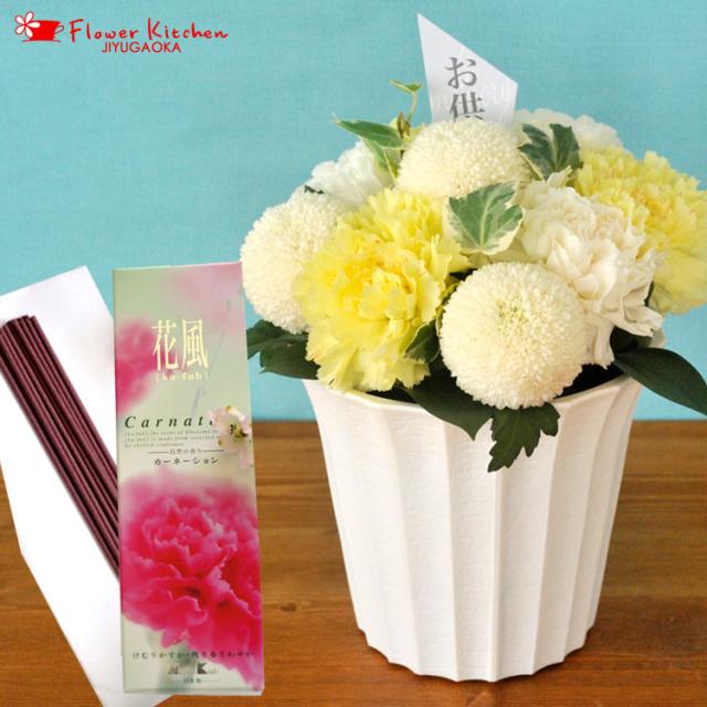 【お供えセット】new優花 イエロー&花風カーネーション お線香ギフトセット 日本香堂 最短翌日着 送料無料 フラワーギフト FKAA
