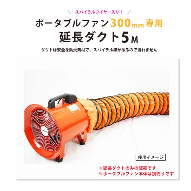ポータブルファン 送排風ファン 300mm用 延長ダクト 5メートル フレキシブルダクト KIKAIYA