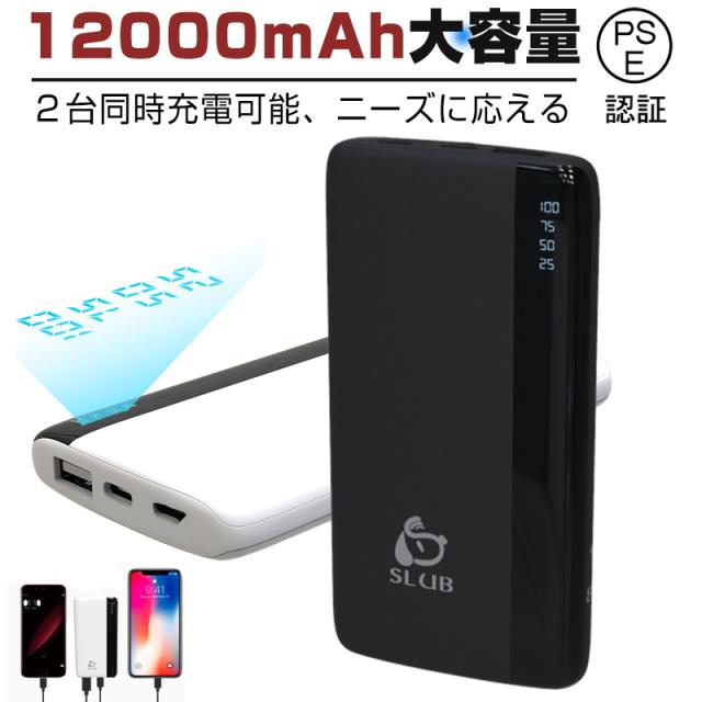 モバイルバッテリー 12000mAh 大容量 小型 充電器 防災電源 残量表示 2台同時充電 スマホ充電器 iPhone17/16/15充電 Micro入力 Type-C出入力 PSE認証済 【PL保険加入済み製品・安心】