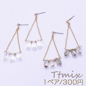 ファッションピアス/イヤリング チェーン 三角形 ガラスチャーム 雫【1ペア】