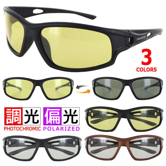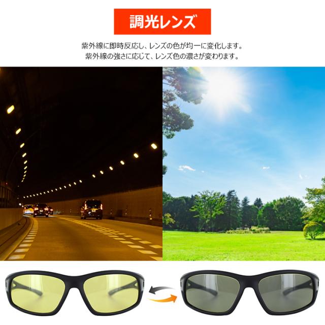 サングラス 偏光 調光 メンズ レディース 偏光サングラス 調光サングラス スポーツサングラス UVカット 釣り ドライブ 車 運転用 紫外線99%カット 軽量 セルフレーム ラバーコート 夜間運転 ブラック/グレー/イエロー/ブラウン ケース付き ao114c【送料無料※沖縄以外】