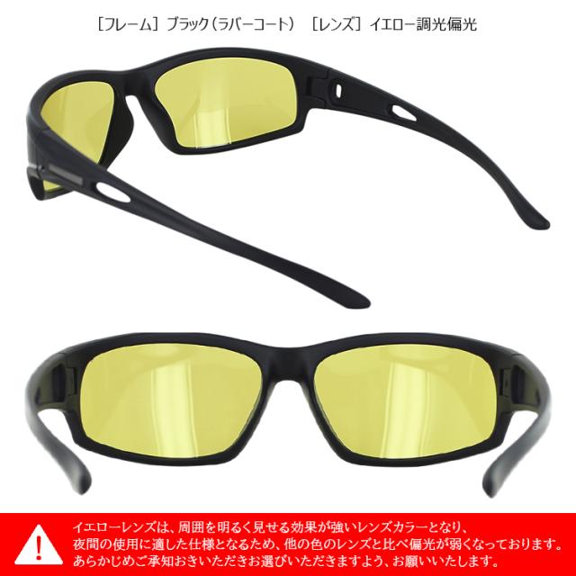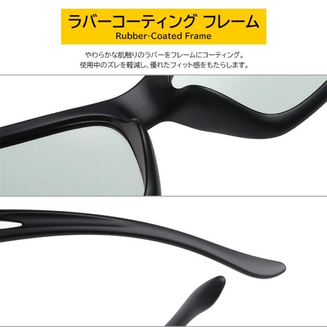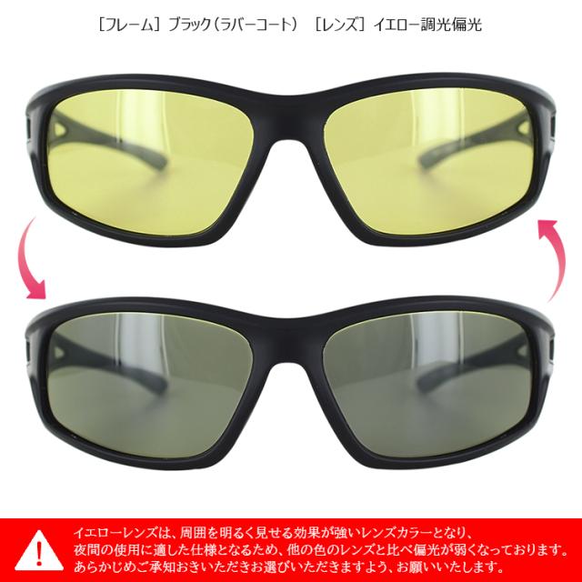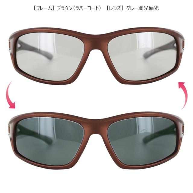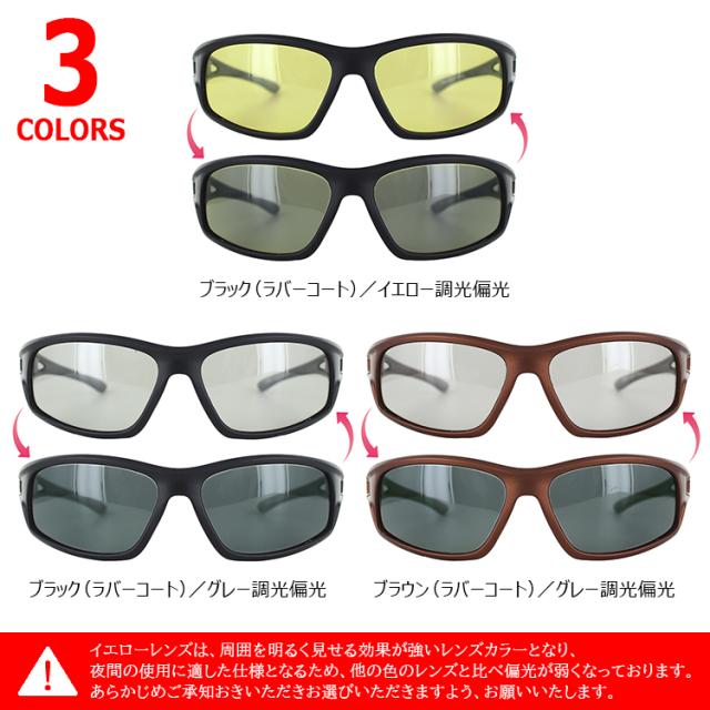 | ブラック(ラバーコート)/イエロー調光偏光 ブラック(ラバーコート)/グレー調光偏光 ブラウン(ラバーコート)/グレー調光偏光 | フレーム:プラスチック テンプル:プラスチック レンズ:プラスチック偏光 |