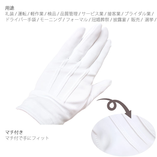 用途:礼装 運転 軽作業 検品 品質管理 サービス業 ドライバー手袋 モーニング フォーマル 応援団 冠婚葬祭 披露宴 販売員 ブライダル 選挙 接客 など
