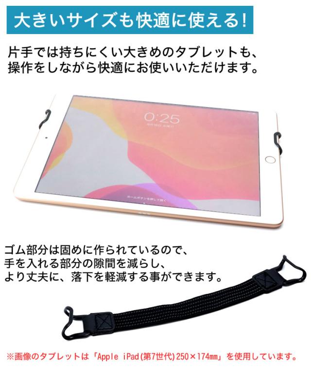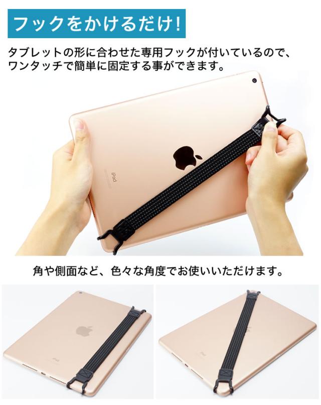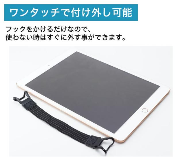 タブレット ipad ベルト 落下防止 フック ワンタッチ かけるだけ 伸縮 タブレットベルト