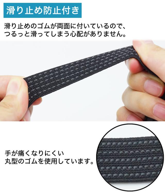 ベルトの両面に滑り止めのゴムが付いているので、つるっと滑って落下してしますのを防止します。