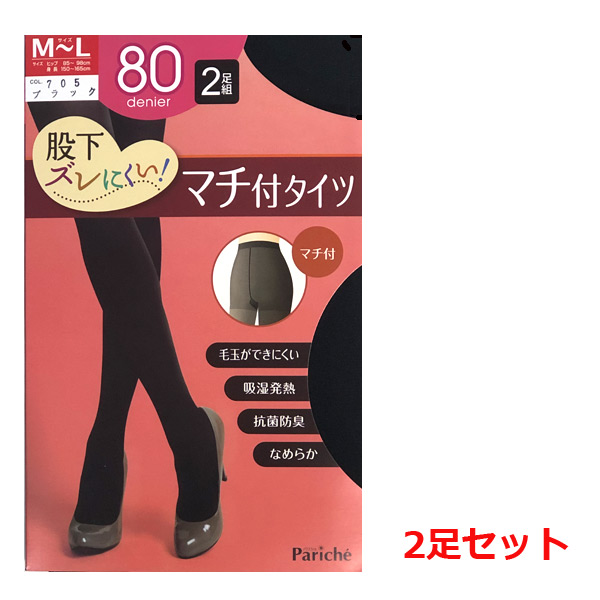 タイツ レディース 【2枚セット】 80デニール 無地タイツ 選べる4サイズ 吸湿発熱加工 抗菌防臭