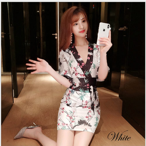 送料無料「沖縄、離島の方は除外です」【S/Mサイズ】サテン素材和鶴柄セクシー花魁着物ドレス 「和柄、よさこい、おいらん、着物 キャバ 花魁 コスプレ」