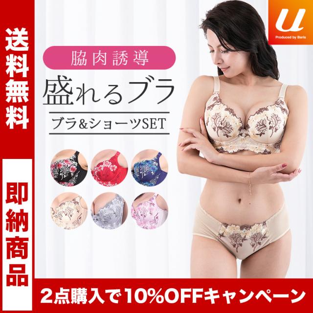 レディース ブラジャー ショーツ セット 脇肉スッキリブラ バストアップ ブラショーツ 大人 脇高ブラ 補正下着 谷間 下着 育乳 かわいい ホック 送料無料