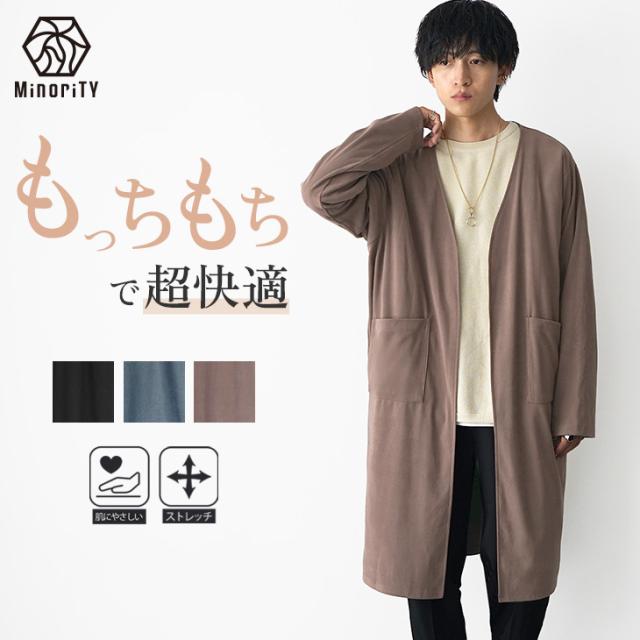 カーディガン メンズ トップス ニットカーディガン 秋冬 カーディガン ロング コーディガン ロング丈 長袖 ロングカーディガン マキシ丈 ニットカーデ ノーカラー カーデ 無地 もちもち 韓国 ファッション メンズファッション モード系 秋服 秋 秋新作 マイノリティ