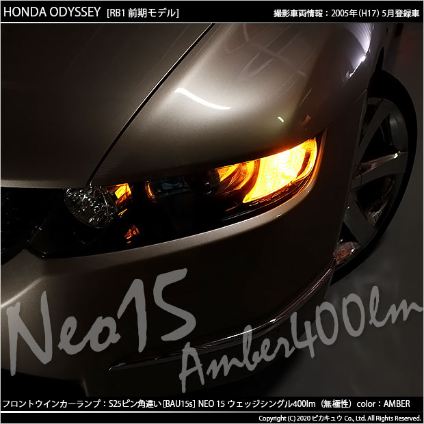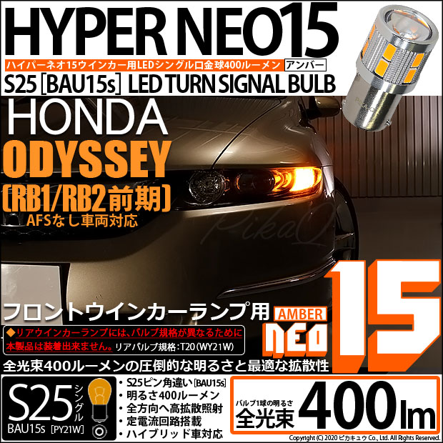 ホンダ オデッセイ[RB1/RB2 前期モデル]対応 フロントウインカーランプ用LEDバルブ 全光束400ルーメン S25ピン角違い[BAU15s] LED TURN SIGNAL BULB 『NEO15』 シングル口金球 LEDカラー:アンバー 1セット2個入り | ||||