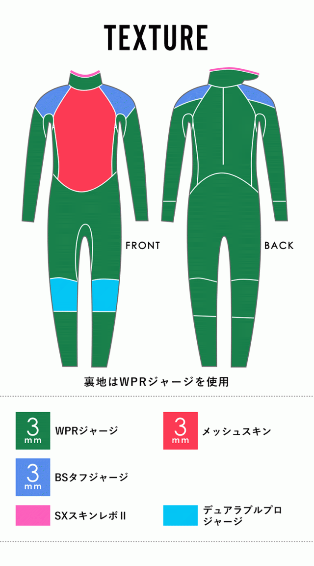 表面:WPRジャージ+BSタフジャージ+メッシュスキン