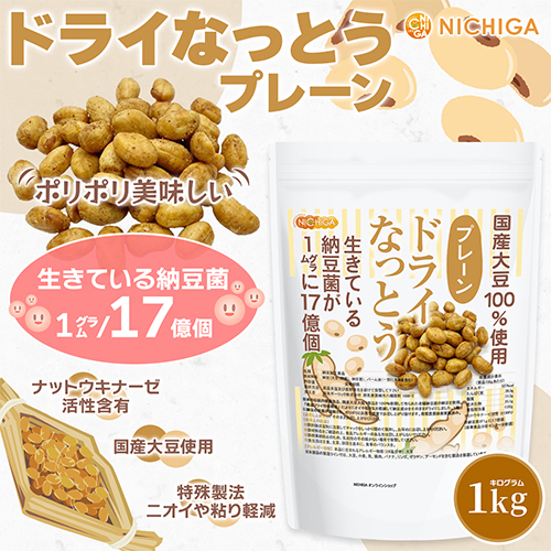ドライなっとう <プレーン> 1kg【送料無料(沖縄を除く)】 国産大豆100%使用 DRY NATTO 生きている納豆菌17億個 ナットウキナーゼ活性含有 低温フライ特殊製法 NICHIGA(ニチガ) TK0