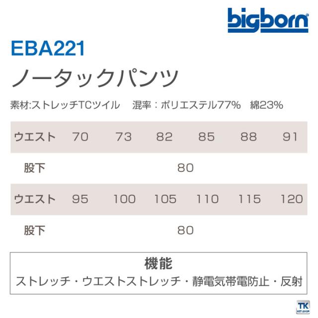 EBA221 ノータックパンツ ビッグボーン 作業服 作業着 ストレッチ 反射素材 かっこいい オールシーズン ズボン