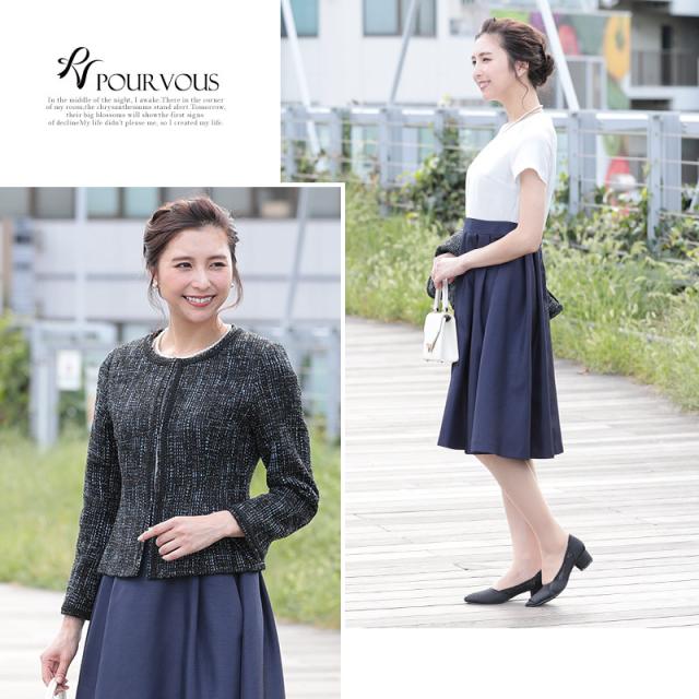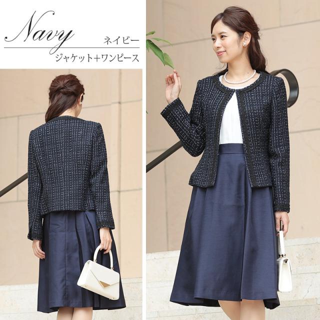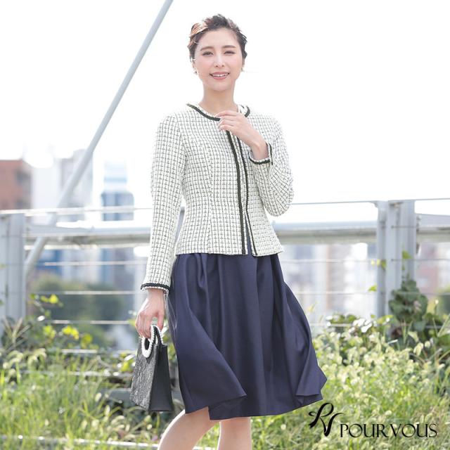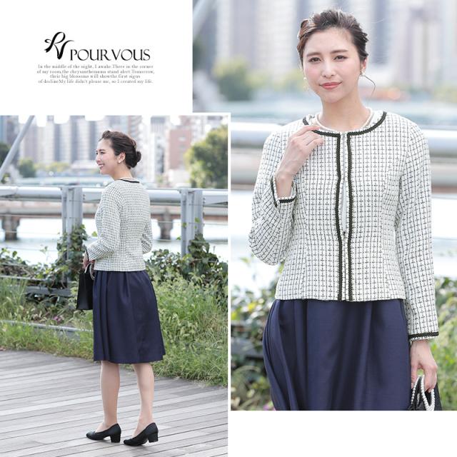 ノーカラーツイードジャケットスーツ2点セット【485201922】20代・30代・40代・50代長袖・膝丈・セットアップ・スカート・体型カバー・ジャケット・テーラード・スーツ・大きいサイズなど・即日発送・送料無料結婚式・婚活・披露宴・顔合わせ・二次会・同窓会・お呼ばれ・食事会・謝恩会・親族・七五三・お宮参り・冠婚葬祭・弔事・女子会・デート・入学式・卒業式・入園式・卒園式・ママ・マタニティー・セレモニー・セレブ・パーティー