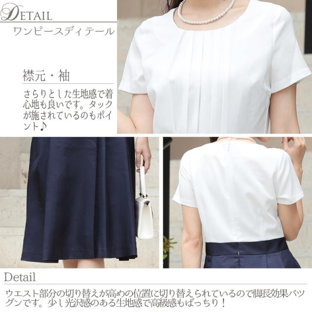 ハイウエスト切り替えのワンピースは脚長効果があり、上品なアイテム。