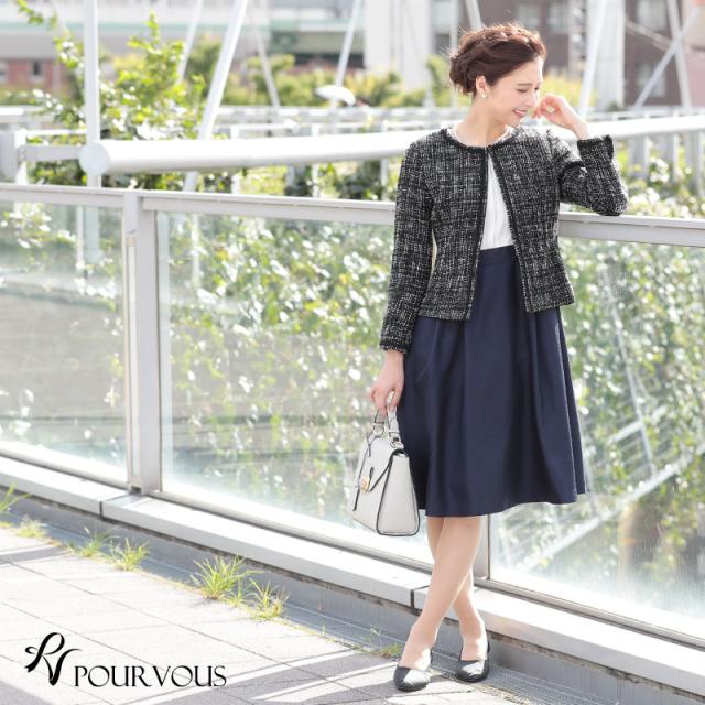 485201922 入学式 スーツ 卒業式 フォーマル 入園式 卒園式 レディース 大きいサイズ ママ セレモニー 母 お宮参り 50代 秋冬 ママスーツ 母親 ビジネス 2点セット セットアップ 2点 きれいめ 女性 スカートスーツ フォーマルスーツ ツイード ノーカラー お受験 幼稚園 面接