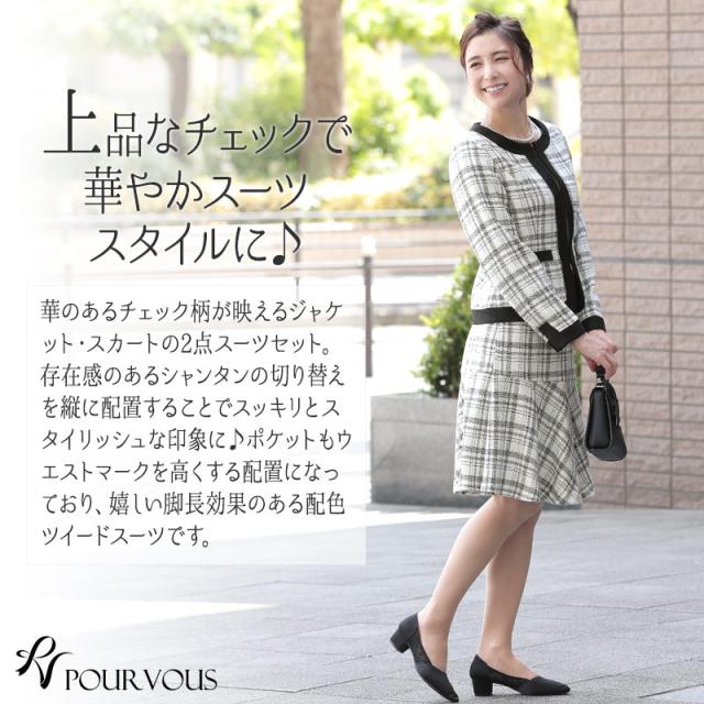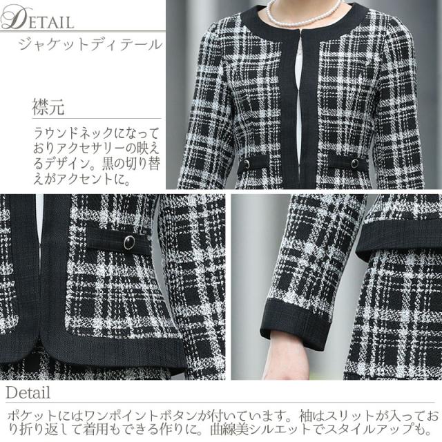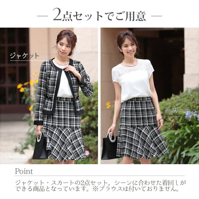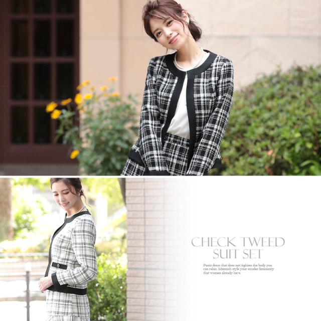 チェックツイードスーツセット2点セット【486201922】20代・30代・40代・50代長袖・膝丈・セットアップ・スカート・体型カバー・ジャケット・テーラード・スーツ・大きいサイズなど・即日発送・送料無料結婚式・婚活・披露宴・顔合わせ・二次会・同窓会・お呼ばれ・食事会・謝恩会・親族・七五三・お宮参り・冠婚葬祭・弔事・女子会・デート・入学式・卒業式・入園式・卒園式・ママ・マタニティー・セレモニー・セレブ・パーティー