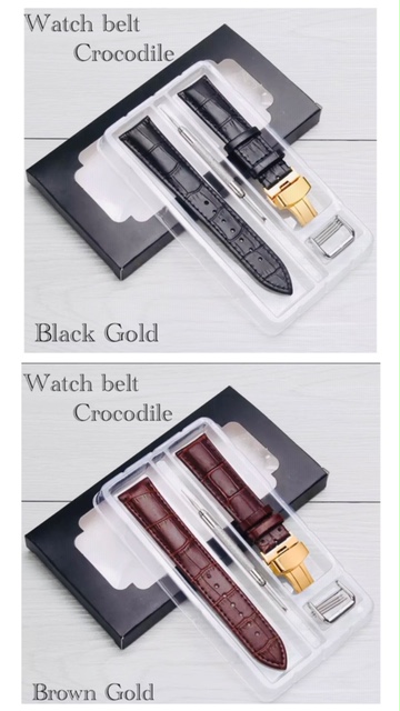 2 腕時計ベルト 時計バンド 替えベルト Dバックル レザー カーフ革 クロコダイル型押し ゴールド 腕時計 時計 修理 レザーベルト 20mm ブラック ブラウン