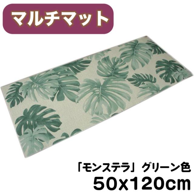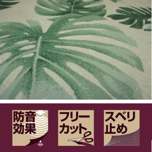 50x120cm/グリーン色/「モンステラ」フェルトプリントマット/滑り止め加工/フリーカット