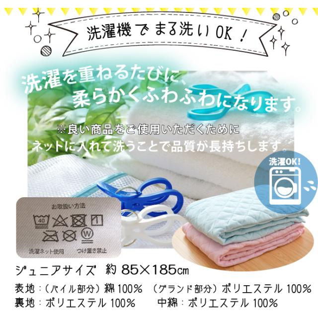 | 綿100 シンカーパイル生地 敷きパッド ジュニアサイズ 約85×185cm |
