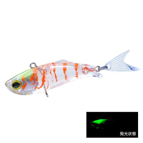 ケイムラカラーのテールフィンでアピール力UP!バイトマーカーとしての役目も果たす。